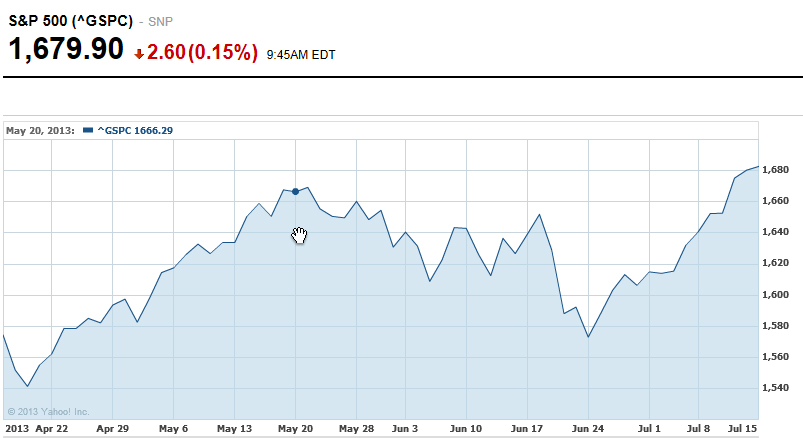 In the last couple of weeks we have seen quite a move in both Equities and Bonds. We had our first pullback of the year in equities, with the S&P dropping 5.76% from its peak in May, only to be followed with a revival of the S&P, to new highs as of yesterday. Click for a larger image